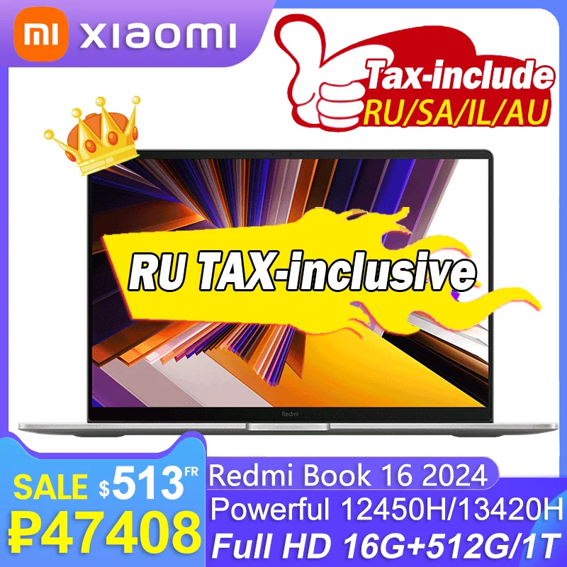 New Xiaomi Redmi Book 16 2024 intel i5 12450H/i5 13420H 16G RAM 512G SSD 16inch Full HD 60Hz Screen JYU4585CN/JYU4614CN
